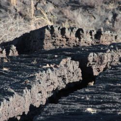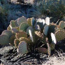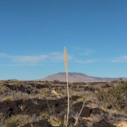 Wieder auf der Straße und fast anderthalb Stunden nördlich wandelt sich das Bild von weiß in schwarz. Lava, 5.000 Jahre jung, liegt hier an der Oberfläche. An sich ist die Wüste hier recht karg (anders als in der Sonora), doch auf der Lava wachsen wieder Kakteen.