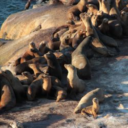 Vor uns der Pazifik. Wir sind in La Jolla. Ein nobler Vorort von San Diego. Die Steilküste ist ein Traum am Abend. Alles ist in abendrot getüncht. Die Seelöwen liegen auf den Klippen und verdauen den letzten Fang. Was für ein Abend.