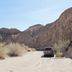 Hinter den Santa Rosa Bergen liegen die Borrego Badlands im Anza Borrego State Park. Im Park selber sind motorisierte Fahrzeuge nur bedingt abseits der Straßen zugelassen. Außerhalb wird daher jede Chance von den Einheimischen genutzt, mit dem Motorrad oder Buggy den Hügel hoch und runter zu fahren. Toll!