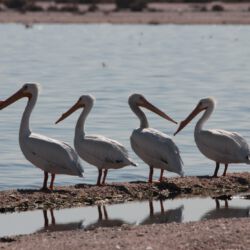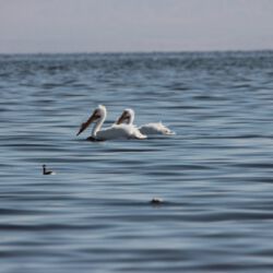 Viele Vögel nutzen den See als Rastplatz. So auch weiße Pelikane.