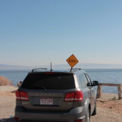 Zunächst fuhren wir die I-10 nach Osten. Hier liegt der Salton Sea. Wikipedia schreibt: Der Saltonsee ist künstlich entstanden: Er ist die Folge eines nach heftigen Regenfällen erfolgten Dammbruchs am Colorado River im Jahre 1905, woraufhin von dort Wassermassen in das sonst ausgetrocknete Imperial Valley strömten. Es dauerte zwei Jahre, bis die Fluten unter Kontrolle gebracht werden konnten. Die kleine Siedlung Salton versank.