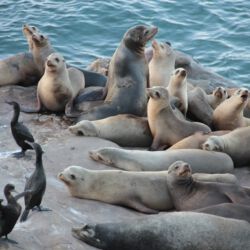Vor uns der Pazifik. Wir sind in La Jolla. Ein nobler Vorort von San Diego. Die Steilküste ist ein Traum am Abend. Alles ist in abendrot getüncht. Die Seelöwen liegen auf den Klippen und verdauen den letzten Fang. Was für ein Abend.