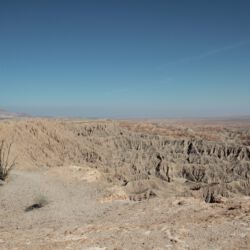 Hinter den Santa Rosa Bergen liegen die Borrego Badlands im Anza Borrego State Park. Im Park selber sind motorisierte Fahrzeuge nur bedingt abseits der Straßen zugelassen. Außerhalb wird daher jede Chance von den Einheimischen genutzt, mit dem Motorrad oder Buggy den Hügel hoch und runter zu fahren. Toll!