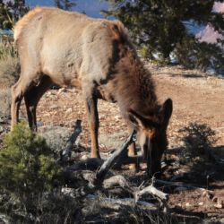Im anderen Teil vom Park sind die Parkplätze knapp. Daher wurde hier ein Shuttleservice eingerichtet. Da wir in der Vergangenheit schlechte Erfahrungen mit dem Shuttleservice gemacht haben, beschließen wir, gleich zurück zu laufen. Wir fahren zunächst bis zur Abyss Richtung Hermits Rest mit dem Bus. Autos sind hier nicht erlaubt, da es keine Parkplätze gibt. Daher ist der Bus in eine Richtung unumgänglich. Nochmal 7 km. Wir sehen wieder Raben. Niedlich. Und Elks. – Das sind Wapiti. Einfach nur große Rothirsche. Wahrscheinlich haben die Siedler sie deswegen mit Elchen verwechselt. – Ich will nicht mehr. Morgen wird nur Auto gefahren. Ein Wolf läuft über die Straße. Der hat bestimmt genauso Hunger wie ich jetzt. Schnell vorbei, bevor der auf dumme Gedanken kommt.